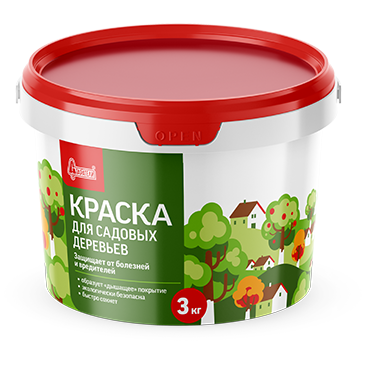 Применяется для окрашивания плодовых и декоративных деревьев и кустарников с целью повышения их зимостойкости, предохранения от солнечных ожогов, защиты от грызунов и вредителей, а также замазывания ран и повреждений. Краска не препятствует естественному воздухообмену, защищает от резких температурных перепадов, безопасна для деревьев.